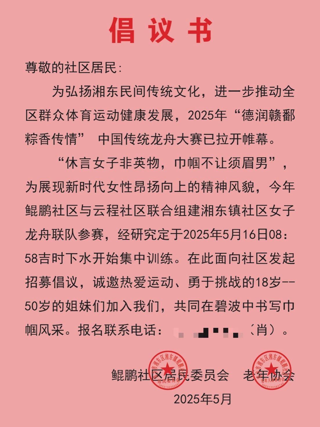 “百年历史百年文化,这是湘东的第一支女子龙舟队”教练邓辉的话语道出了这一突破性的历史意义。鲲鹏社区成立于2023年11月29日,其所辖范围内的大多数居民都是由排山、东桥等村的居民因拆迁而来,或者是因为家中子女在附近上学而迁居至此。作为一个新成立的社区,面临着知名度不高的现实困境。“刚开始的时候,附近的很多居民都不知道鲲鹏社区在哪里”,邓辉说道。